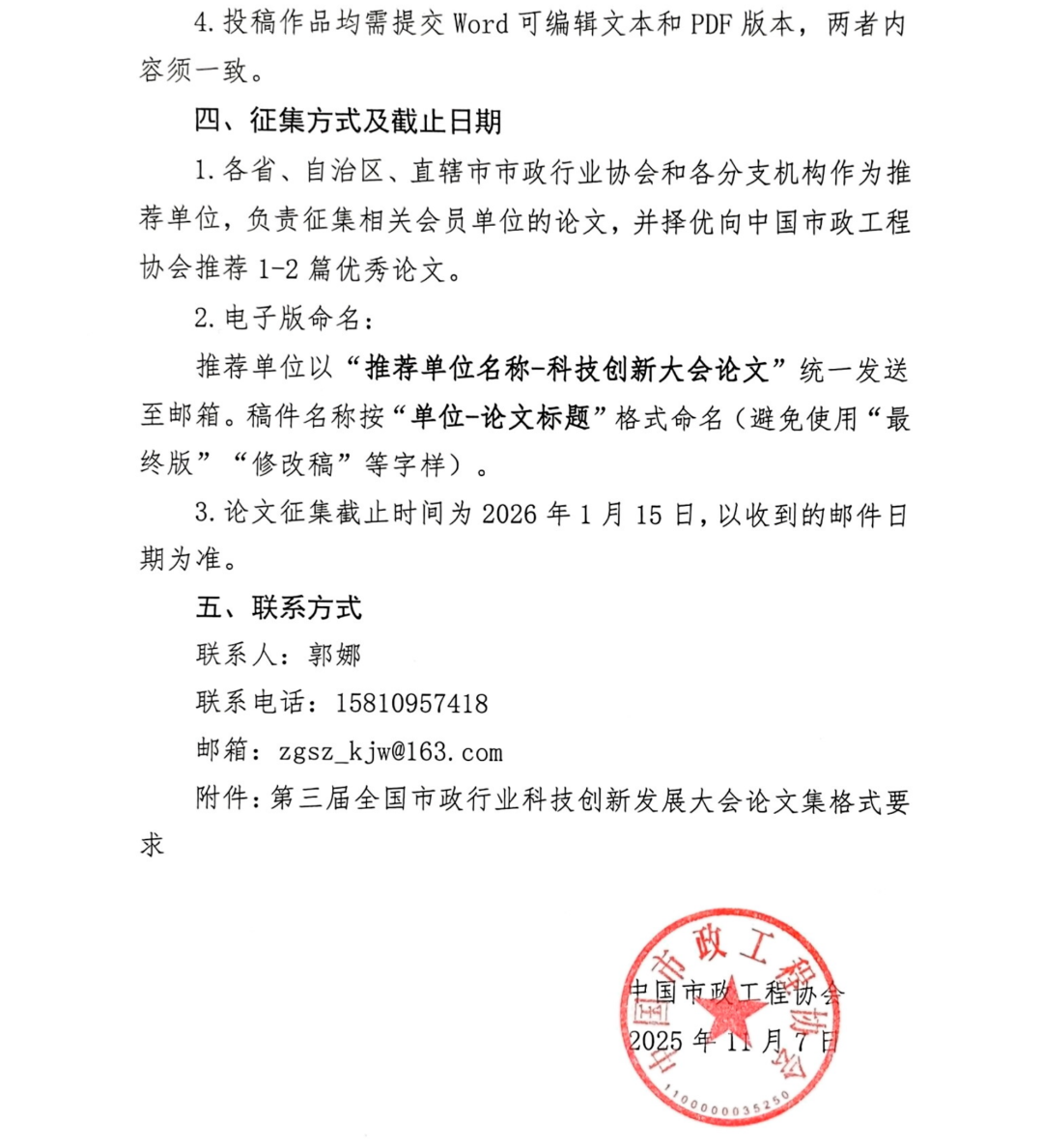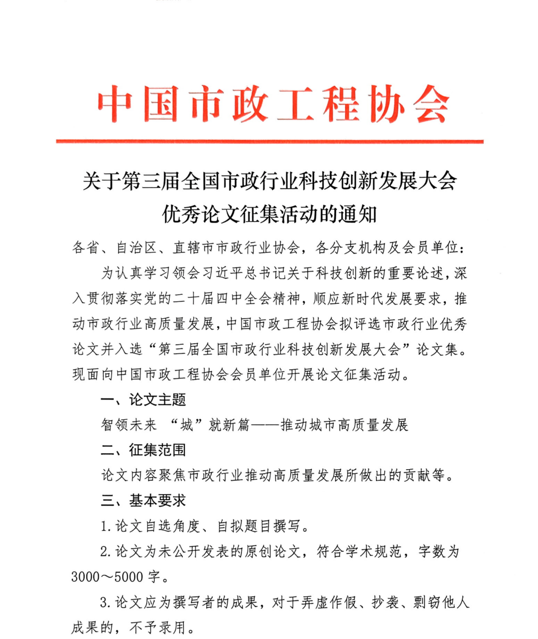 关于第三届全国市政行业科技创新发展大会优秀论文征集活动的通知