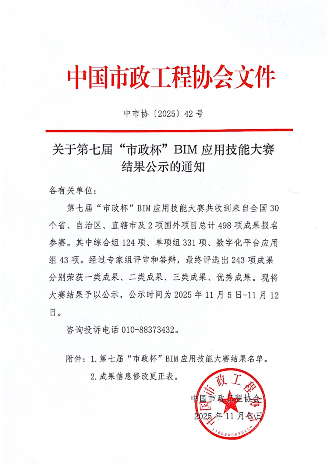 关于第七届“市政杯”BIM应用技能大赛结果公示的通知