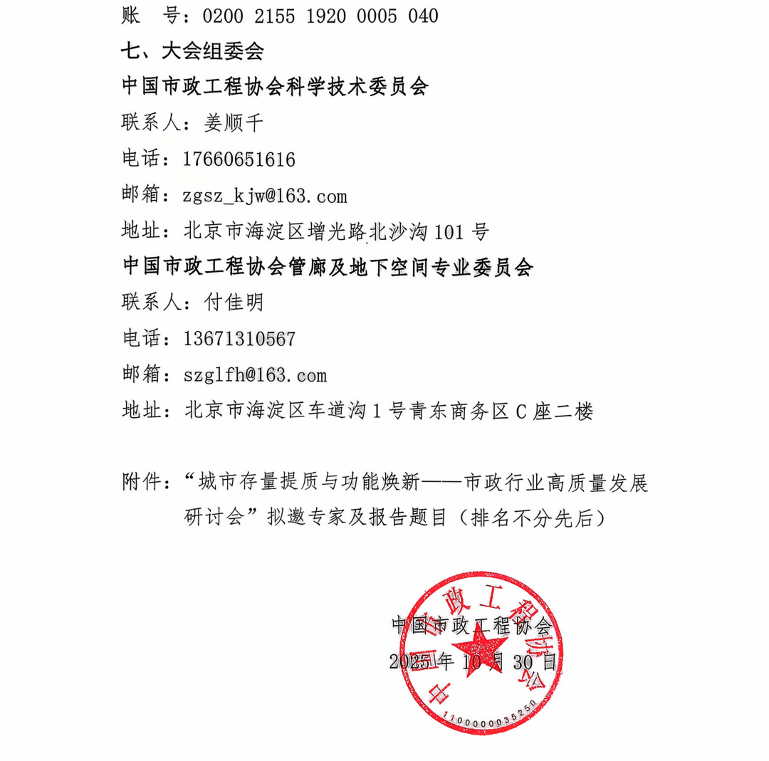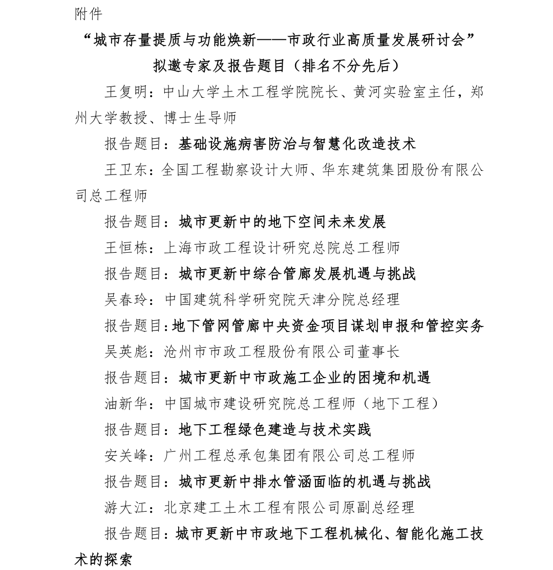 关于召开“城市存量提质与功能焕新--市政行业高质量发展研讨会”的通知