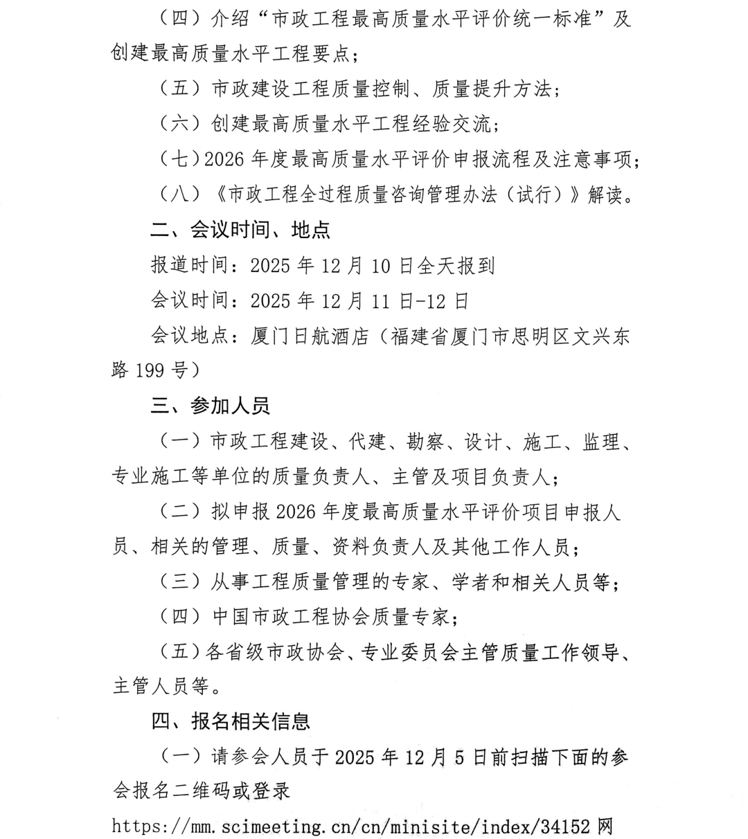关于举办“2026年度市政工程质量管理水平提升经验交流会”的通知