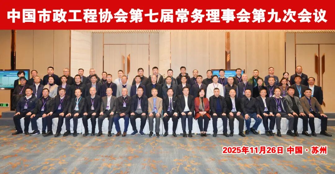 2025年11月26日,中国市政工程协会第七届常务理事会第九次会议在江苏省苏州市举行。会议由中国市政工程协会会长卢英方主持,副会长兼秘书长刘春生,副会长刘平星、王敬民、王健中、王斌、刘波、闫建平、唐建新、吴英彪、胡承启、严家友、林昌梅、牟晓岩、陈锦耀、方伟、郭云飞、郑旭晨等53位常务理事出席了会议。监事长冯玉库列席会议。