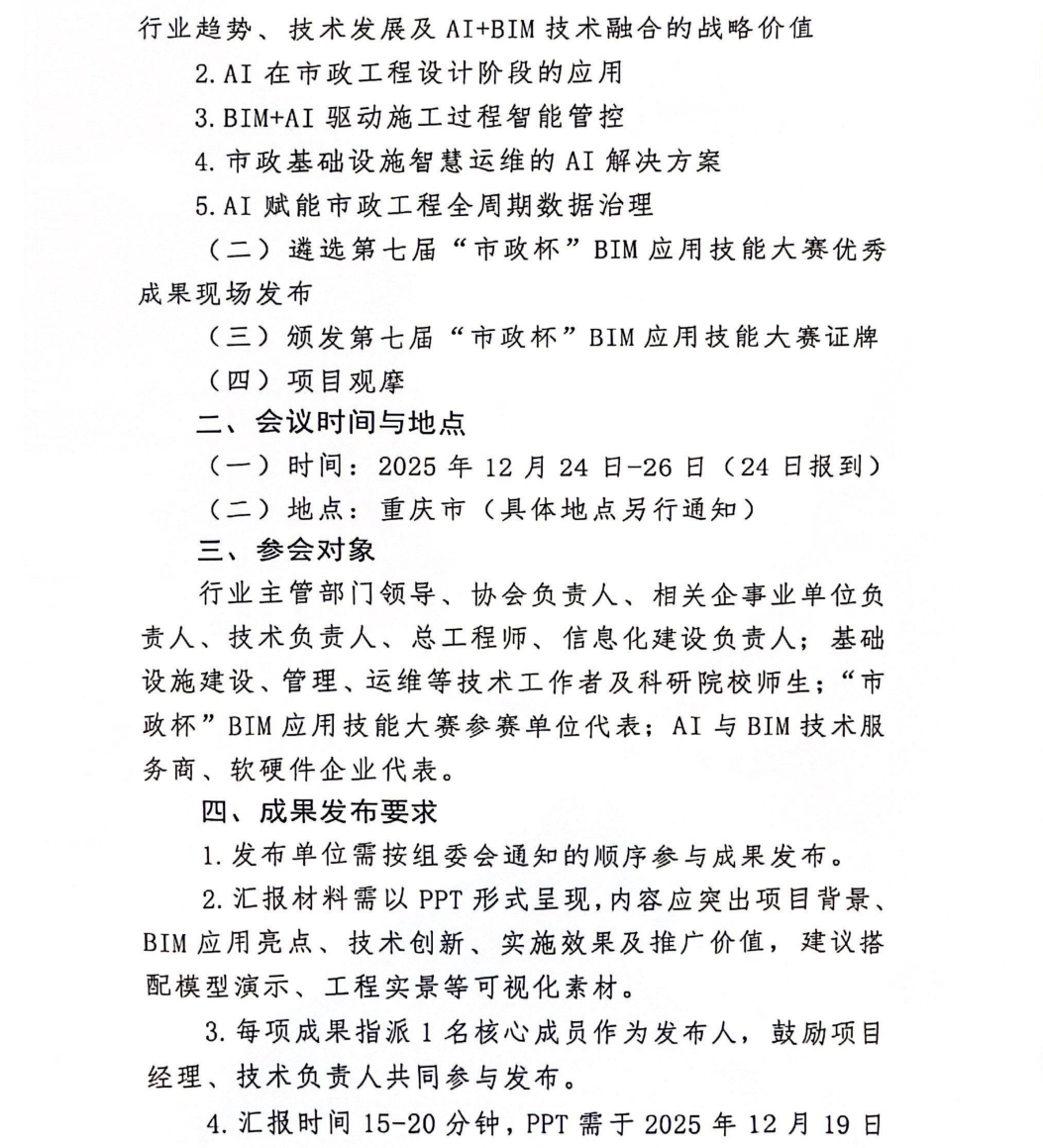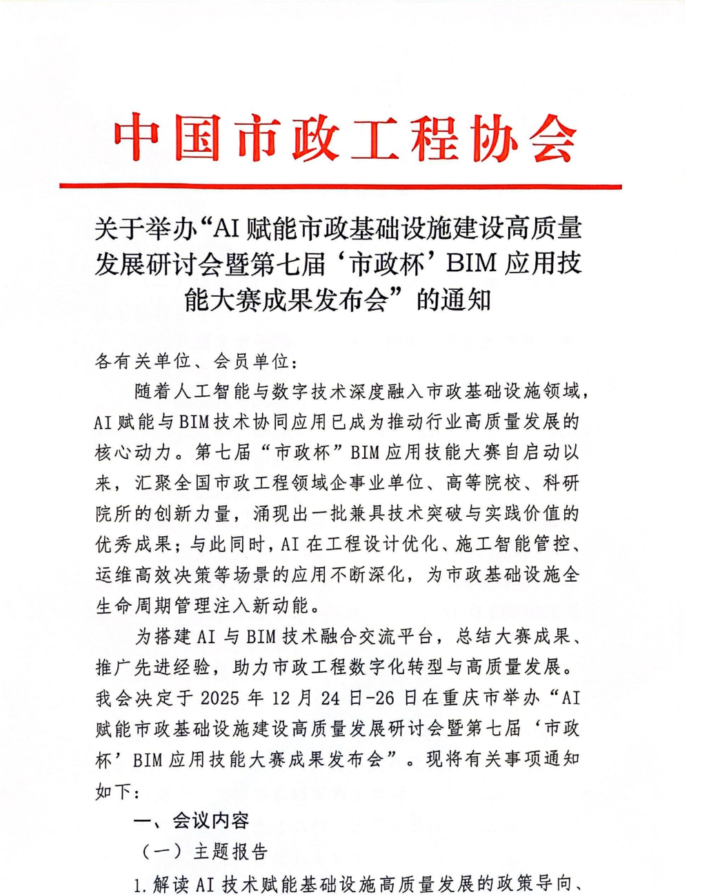 关于举办“AI赋能市政基础设施建设高质量发展研讨会暨第七届'市政杯’BIM应用技能大赛成果发布会”的通知
