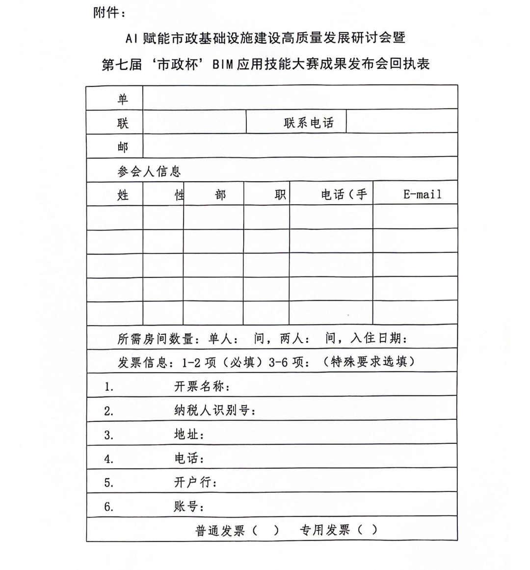 附件:AI赋能市政基础设施建设高质量发展研讨会暨第七届‘市政杯’BIM应用技能大赛成果发布会回执表