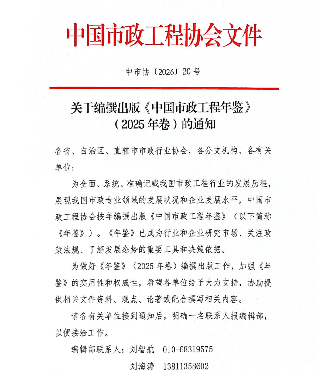 关于编撰出版《中国市政工程年鉴》2025年卷)的通知